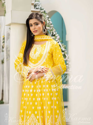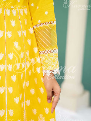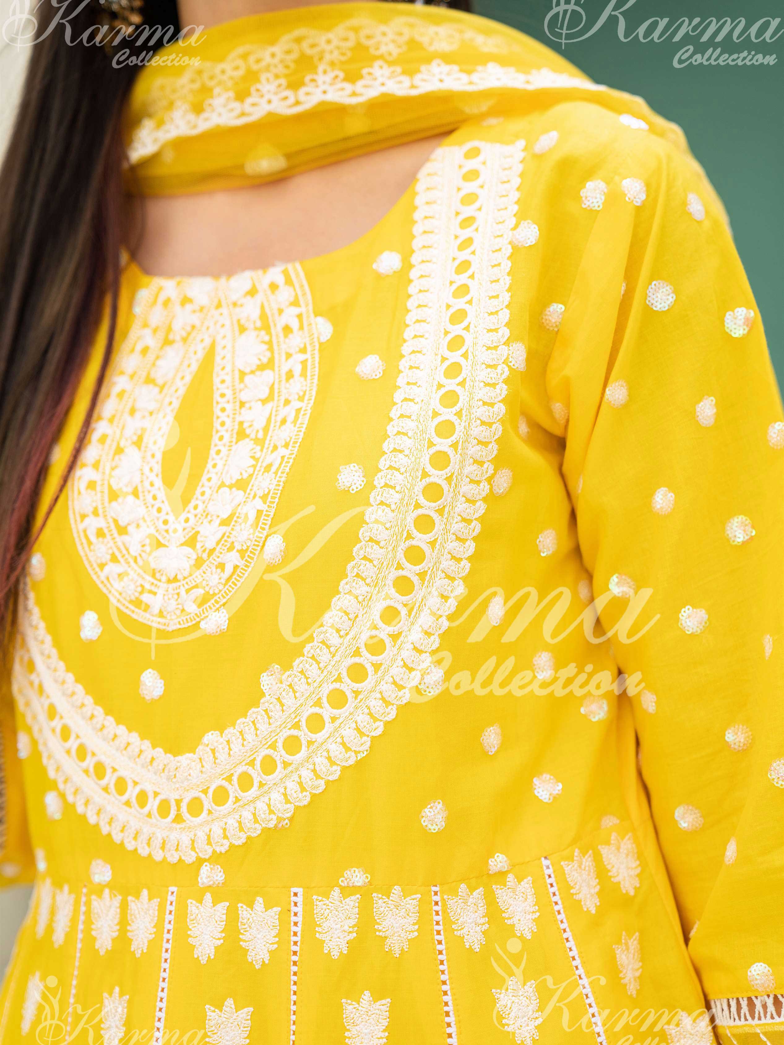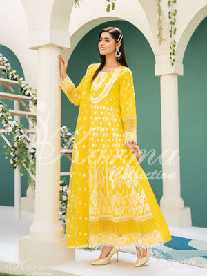 Karma Collection Yellow Embroidered Long Frock 3-Piece Suit (1303)