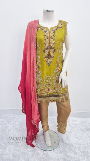 Khuda Baksh Mehndi Resham Masoori 3-Piece Suit