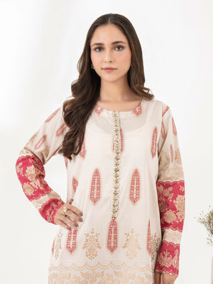 Limelight Off-White & Pink Jacquard Embellished Shirt (P9850SH)