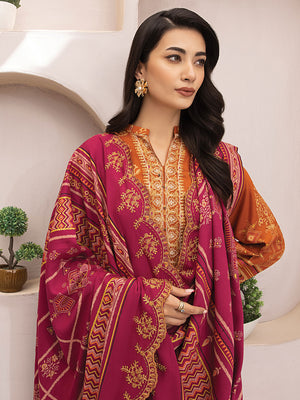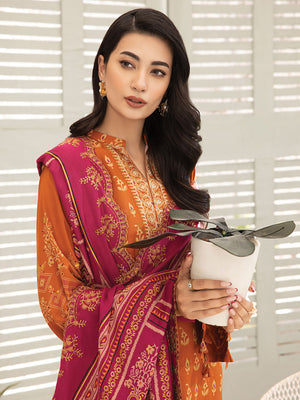 Lakhany Rust Orange Unstitched Pashmina Embroidered Suit (LG-EA-0491)
