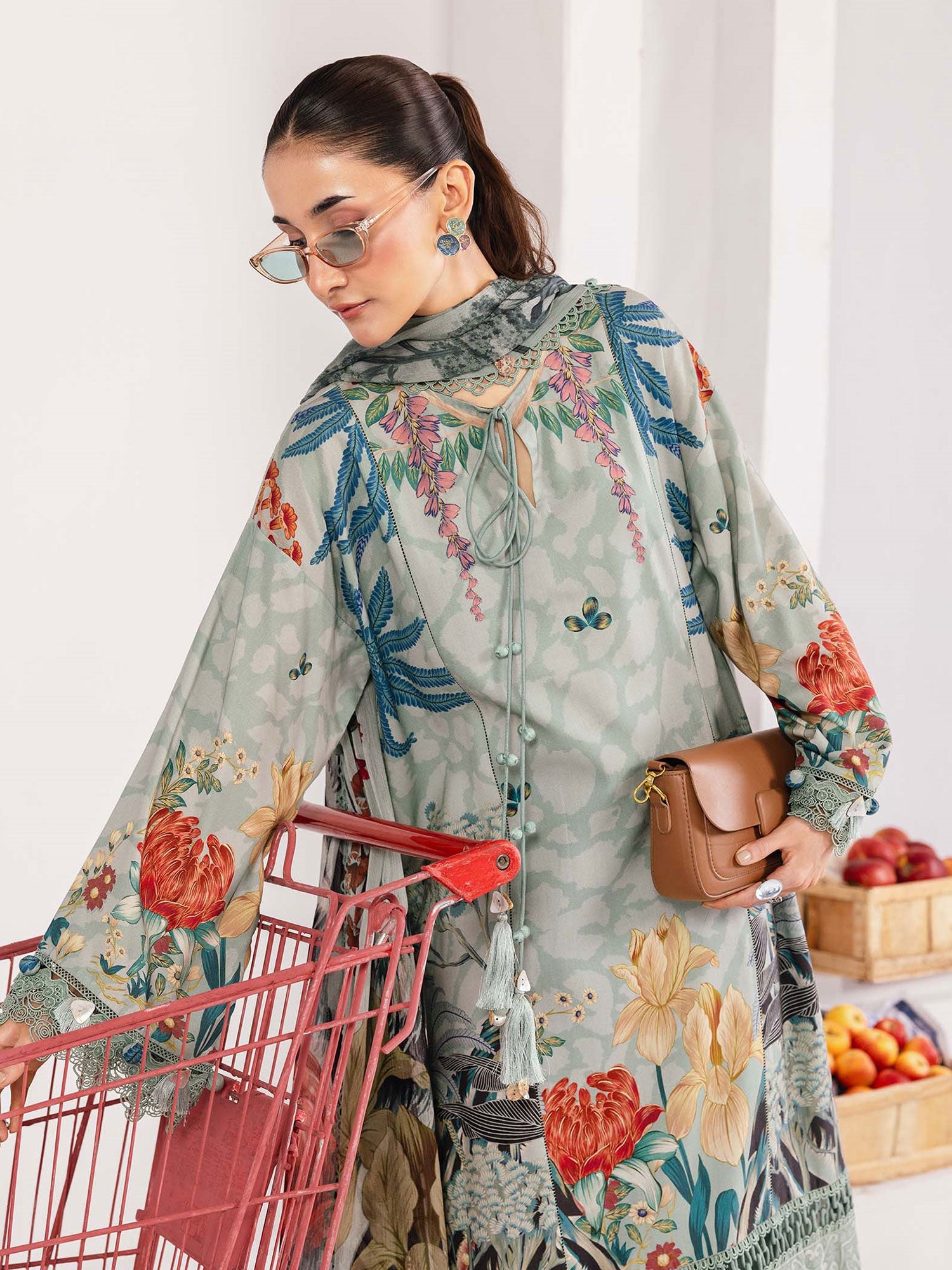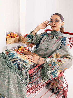 Maria.B Unstitched Winter Linen Suit (MB-CUS25-1109A) - Green