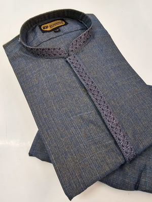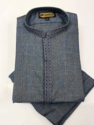 Mens Semi-Formal 2-Piece Kurta Shalwar - Blue-Grey