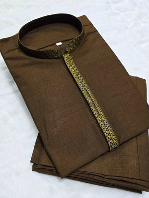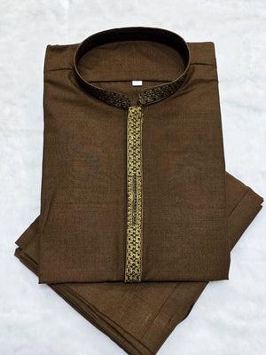 Mens Semi-Formal 2-Piece Kurta Shalwar - Brown