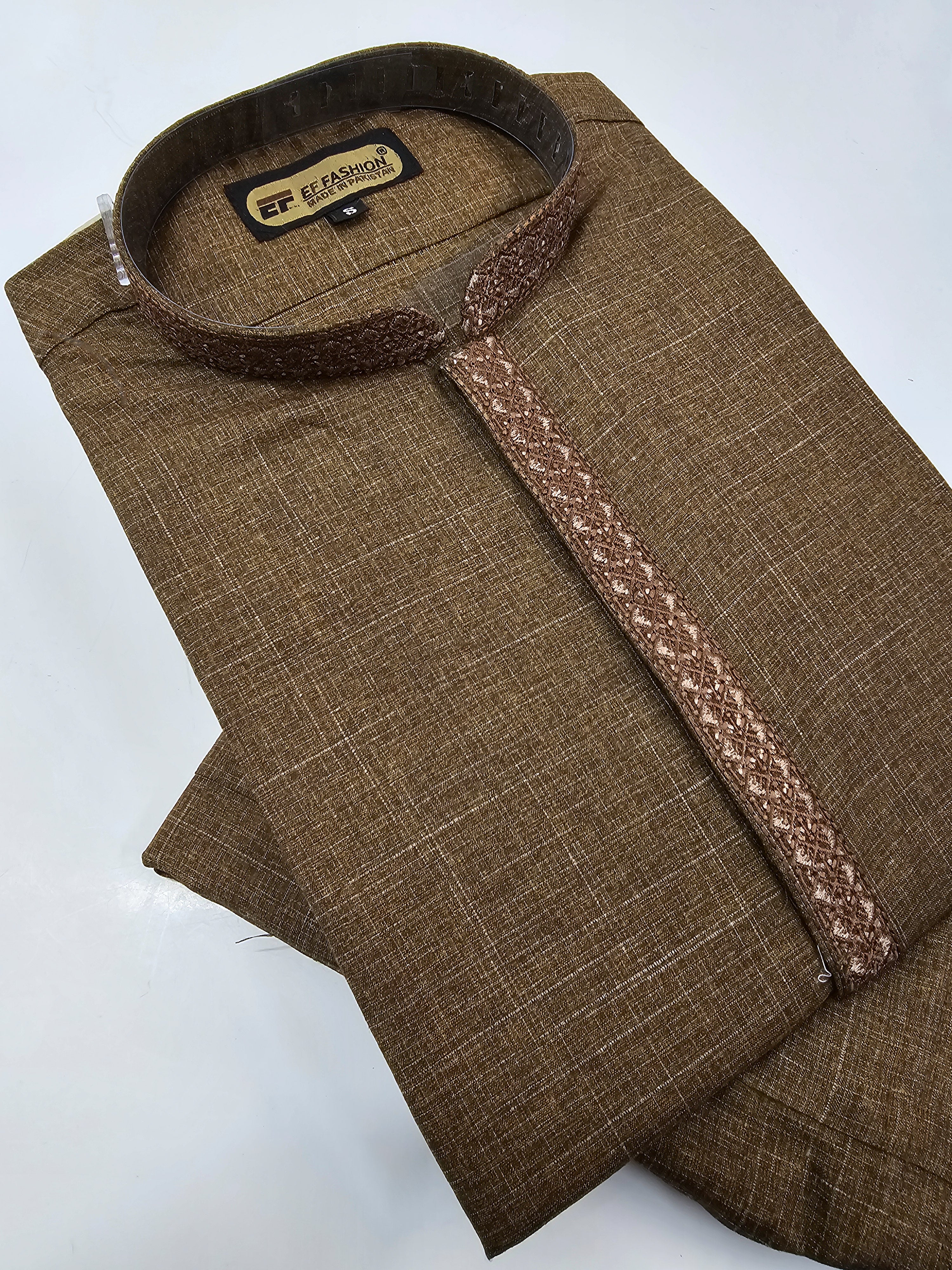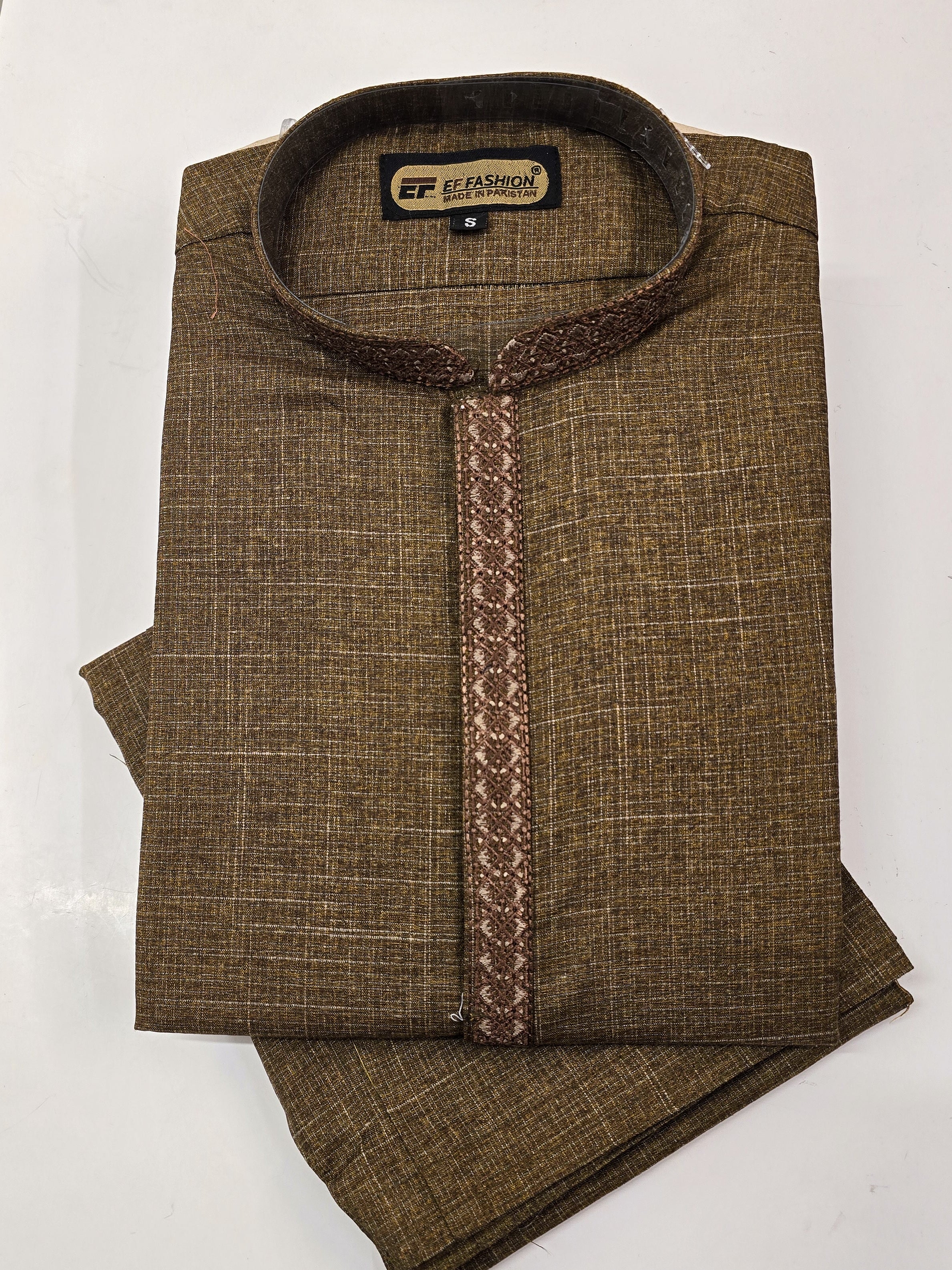 Mens Semi-Formal 2-Piece Kurta Shalwar - Dark Brown