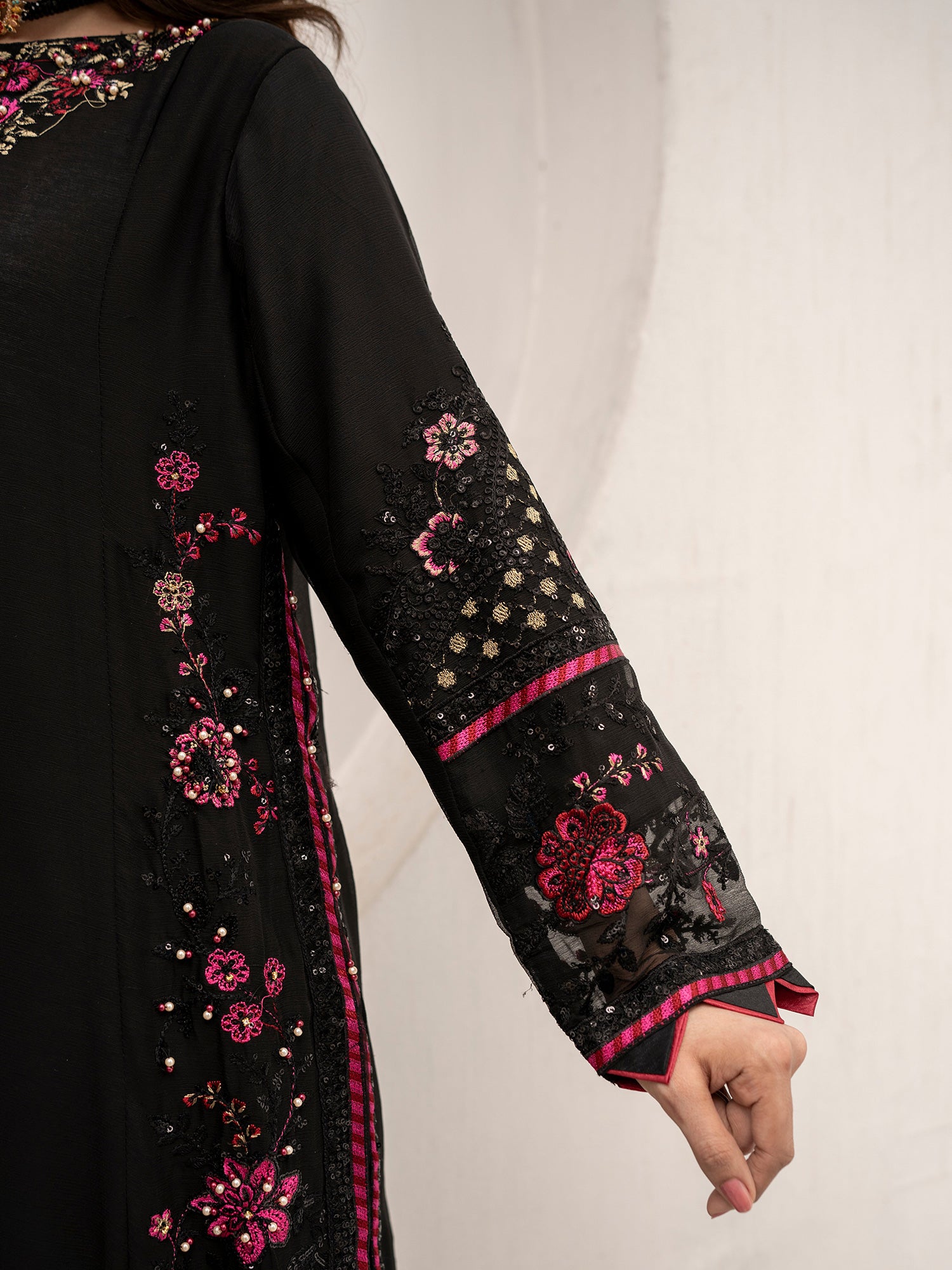 Black Embroidered Chiffon 3-Piece Suit