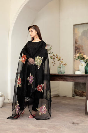 Black Embroidered Winter Cotton Suit