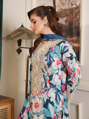 Blue Digital Print Lawn-Cotton 3-Piece Suit