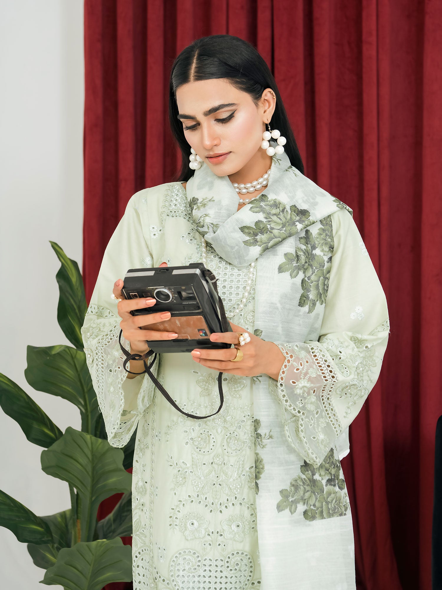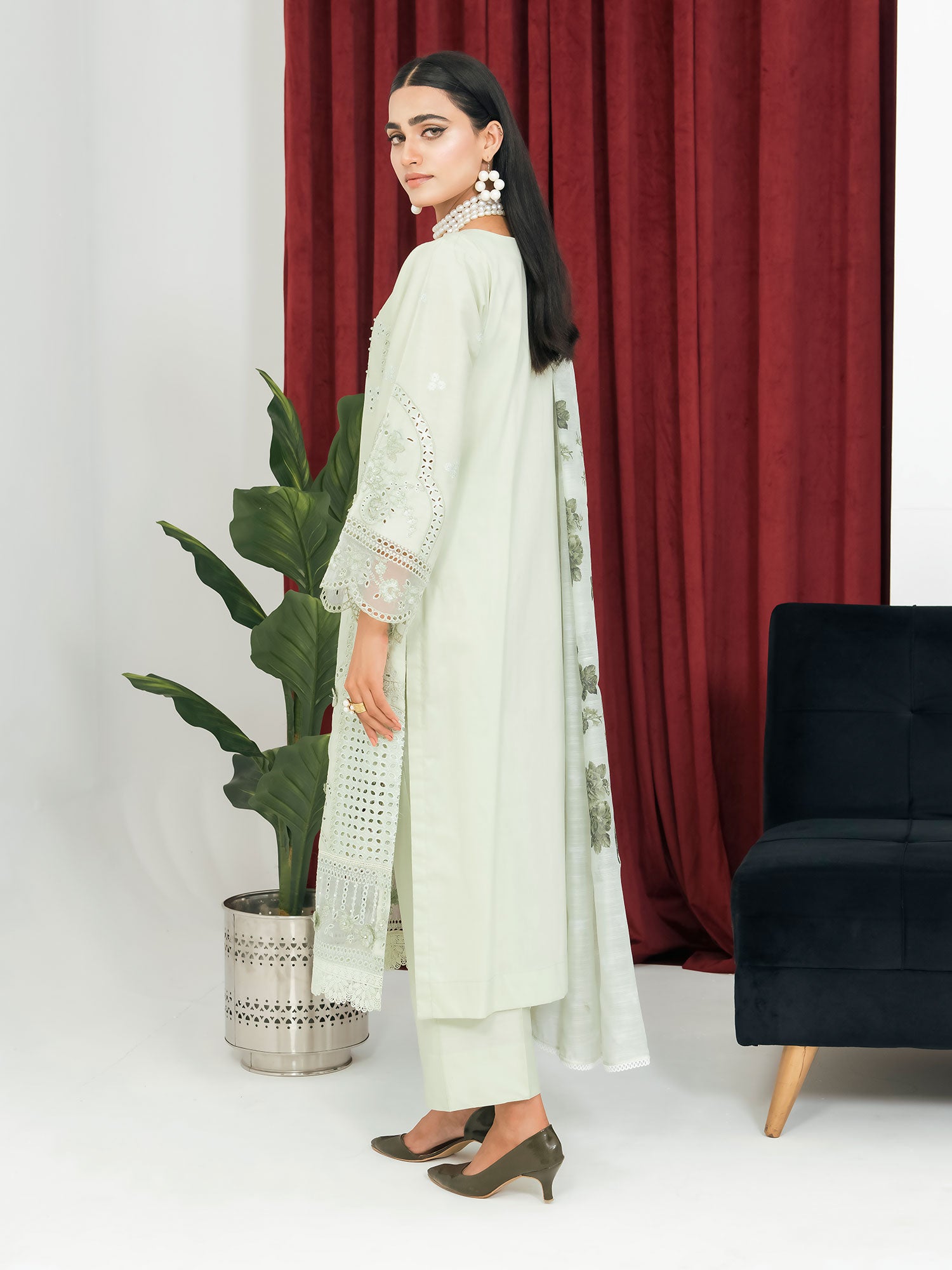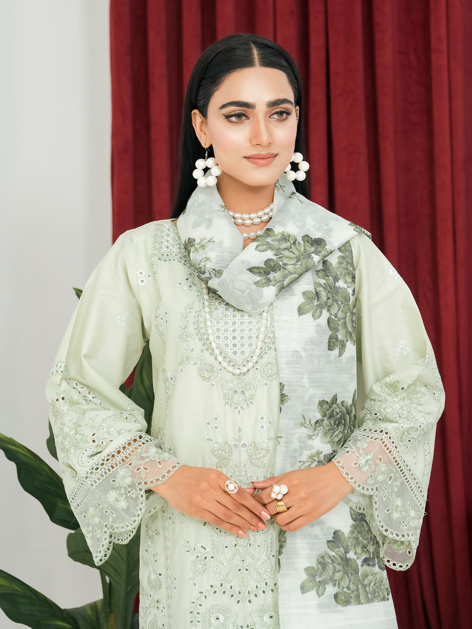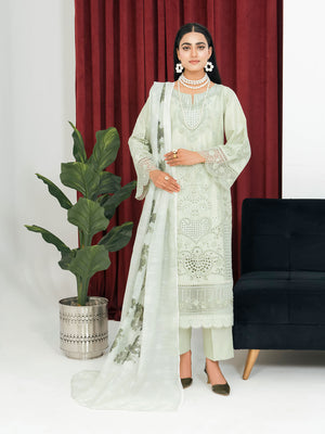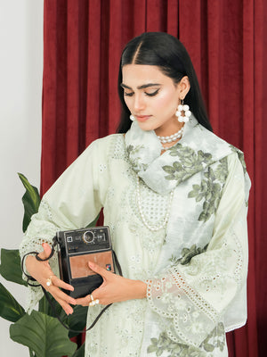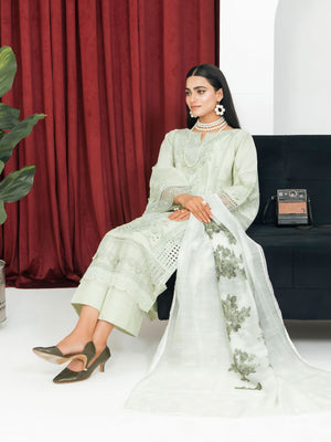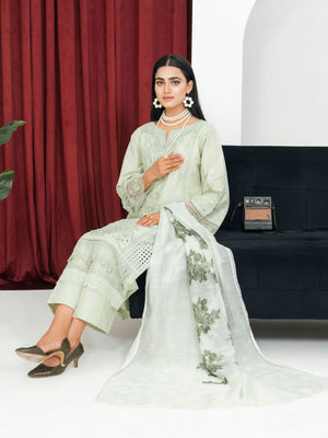 Light Green Schiffli Embroidered Winter Linen Suit