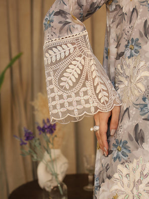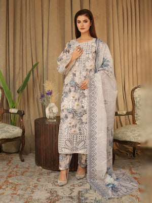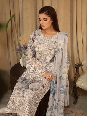 Light Grey Digital Lawn-Cotton 3-Piece Suit