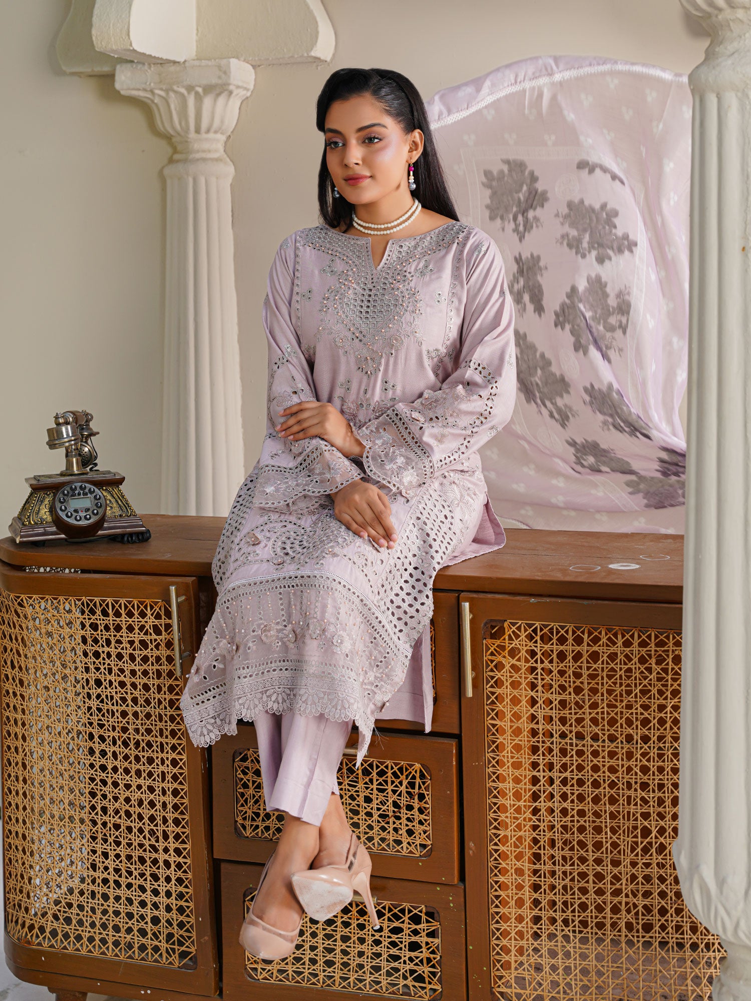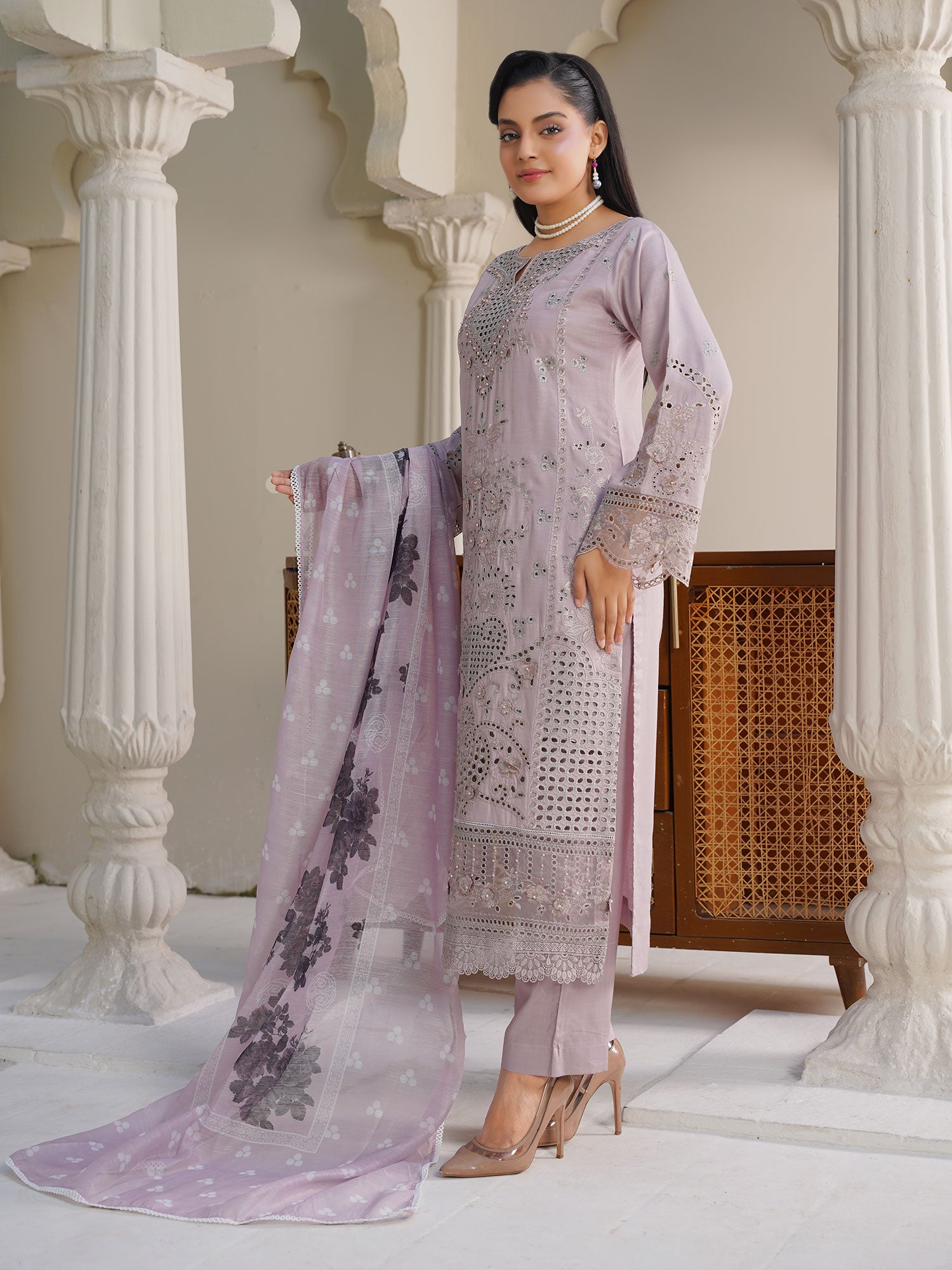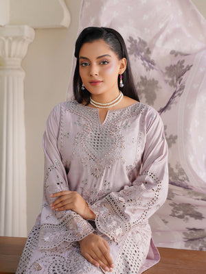 Lilac Schiffli Embroidered Winter Linen Suit