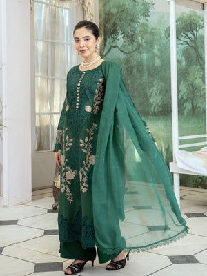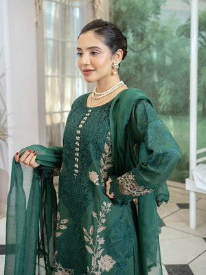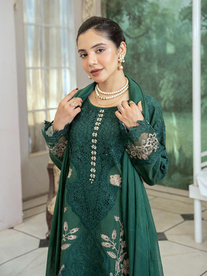 Lux Embroidered Linen 3pc Suit - Green