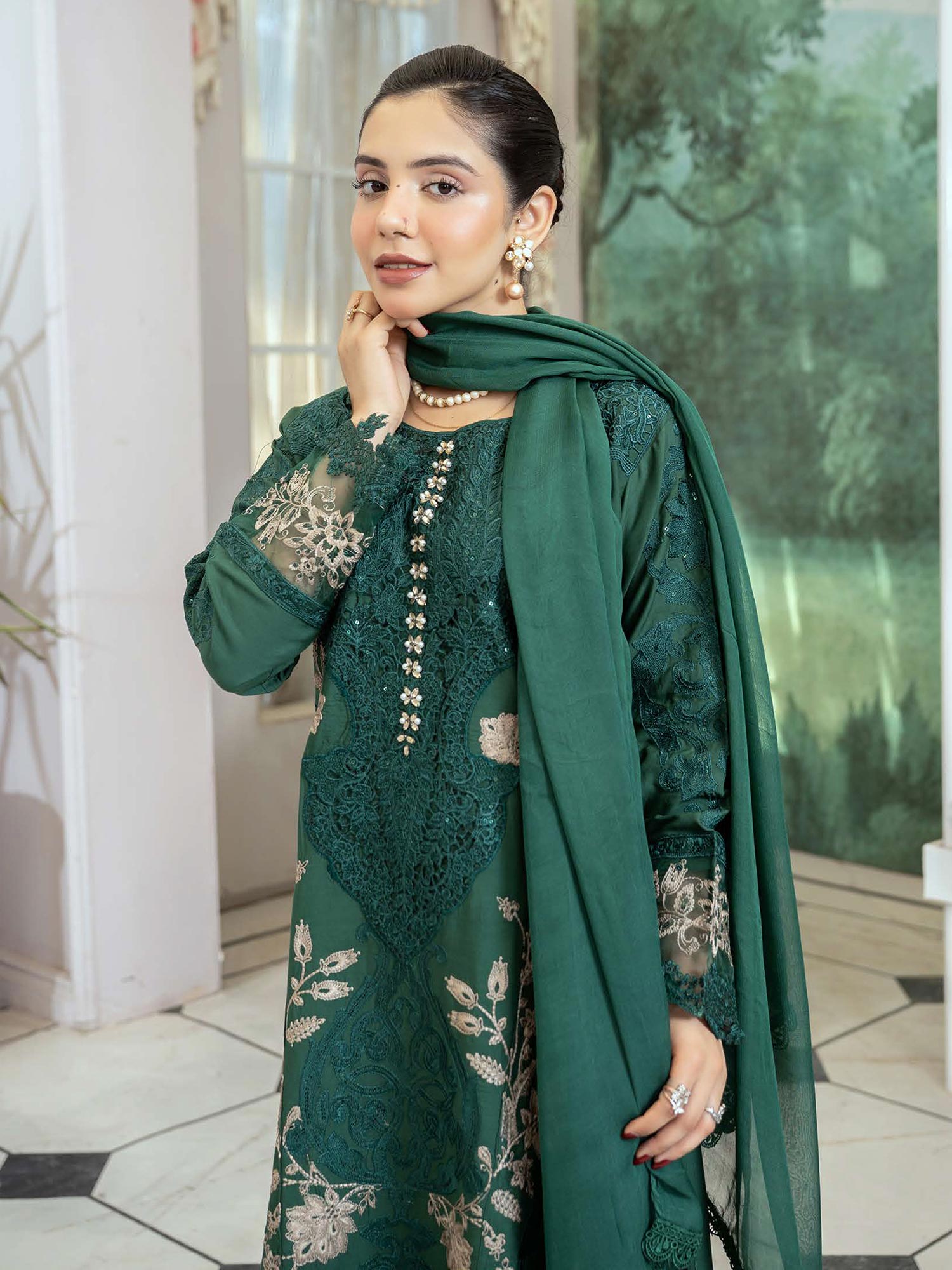 • Matching embroidered chiffon dupatta