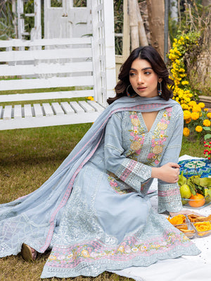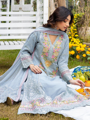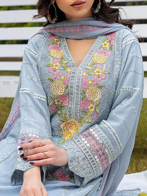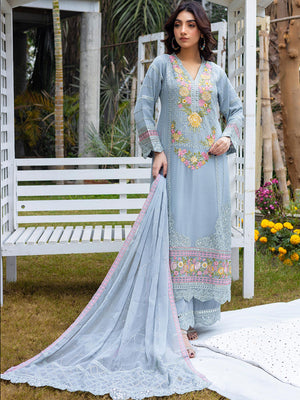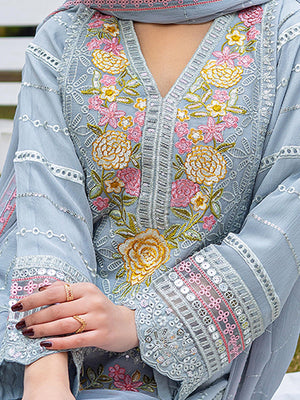 Luxury Embroidered Chiffon Suit (Vol.02) - Grey