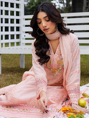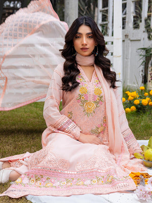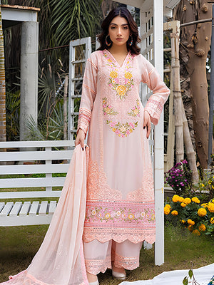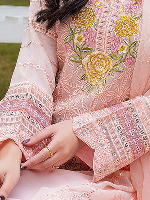 Luxury Embroidered Chiffon Suit (Vol.02) - Peach