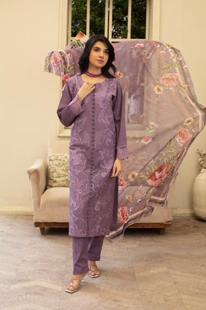 Mauve Embroidered Winter Cotton Chikankari Suit