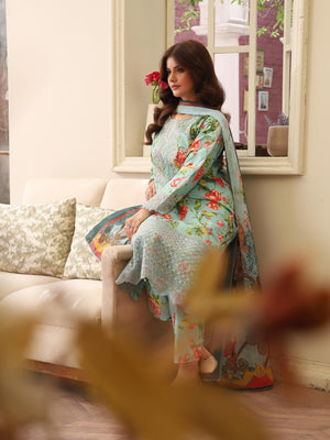 Mint Green Digital Print Lawn-Cotton 3-Piece Suit