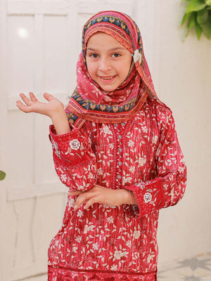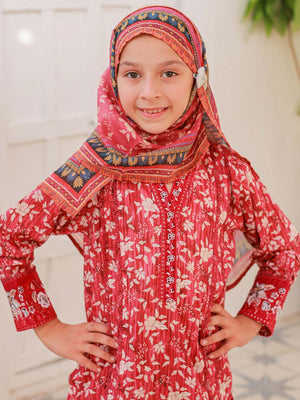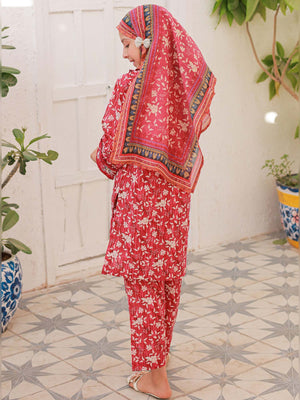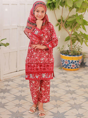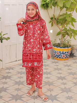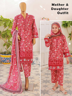 Mother-Daughter Lawn Casual 3-Piece Suit - Pink