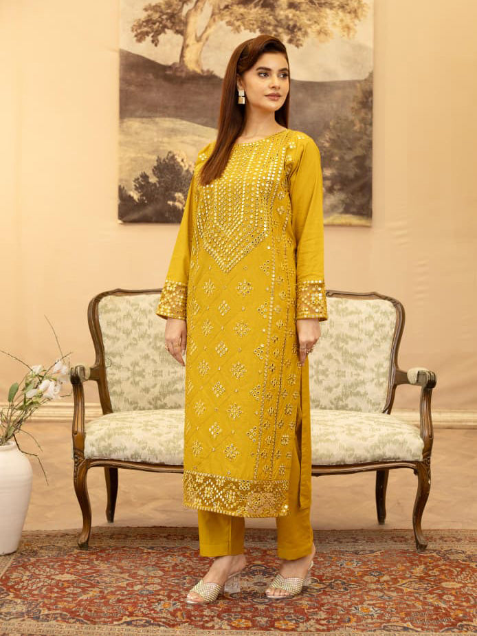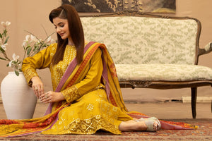 Mustard Embroidered Winter Cotton Chikankari Suit
