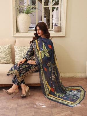 Navy Digital Print Lawn-Cotton 3-Piece Suit