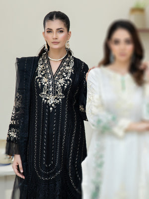 Opulent Black Embroidered Chiffon 3-Piece Suit