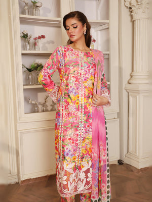 Pink Digital Print Lawn-Cotton 3-Piece Suit