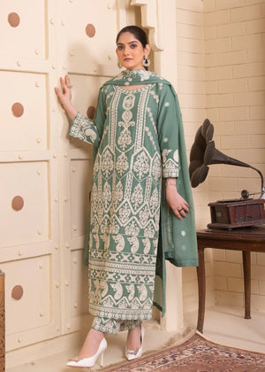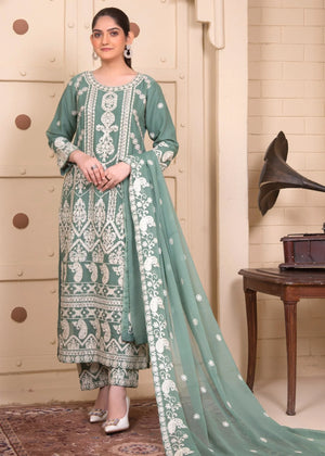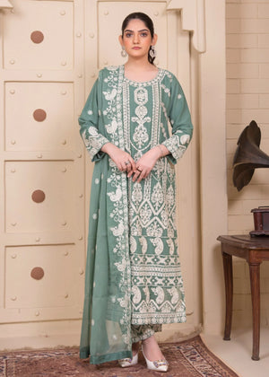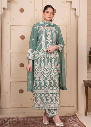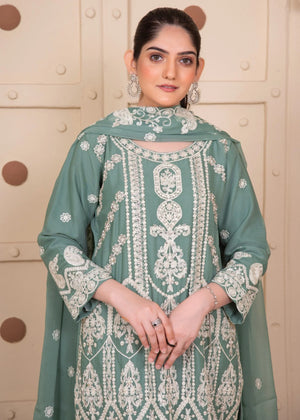 Pistachio Luxury Embroidered Chiffon 3-Piece Suit