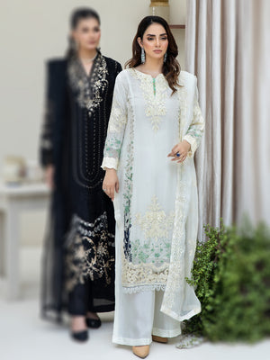 Pure Elegance White Embroidered Chiffon 3-Piece Suit