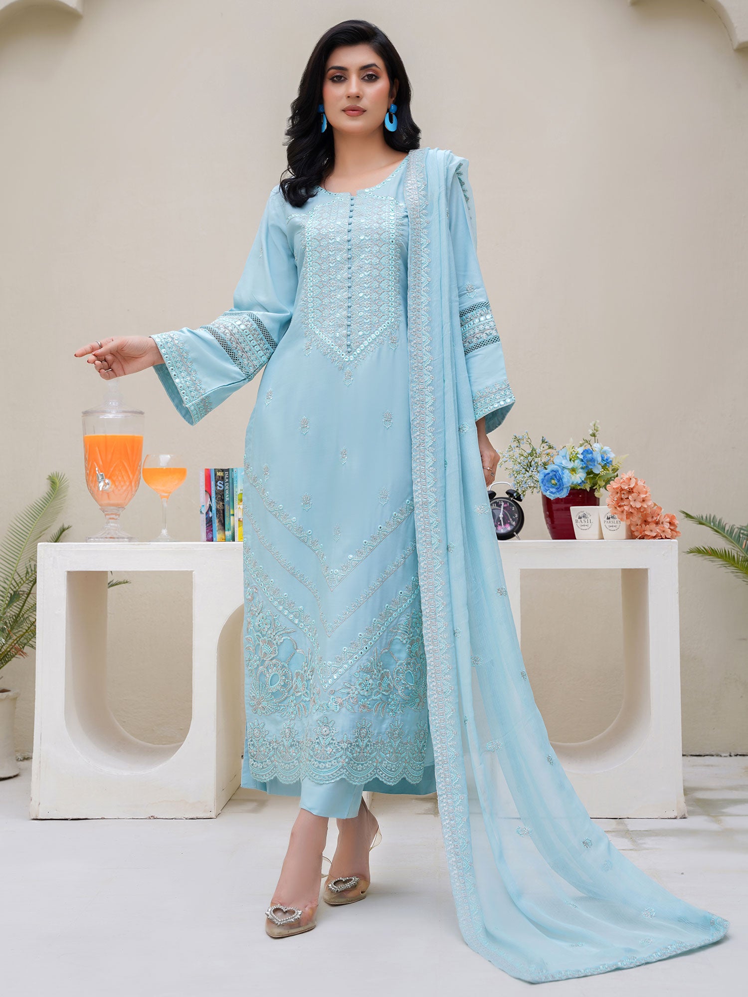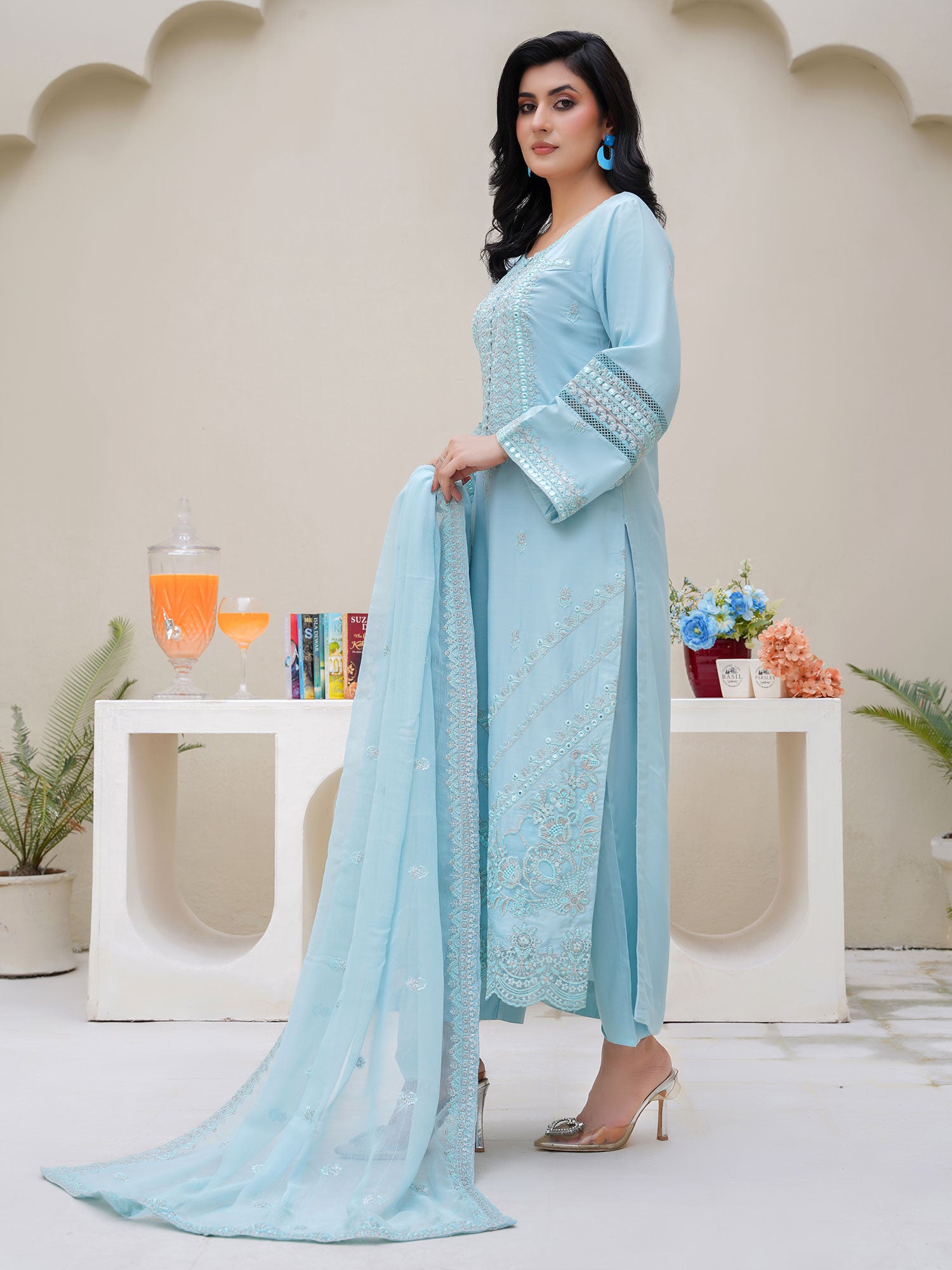 - Embroidered chiffon dupatta