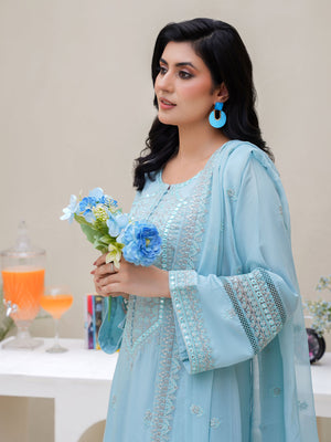 Sky Blue Embroidered Winter Linen Suit