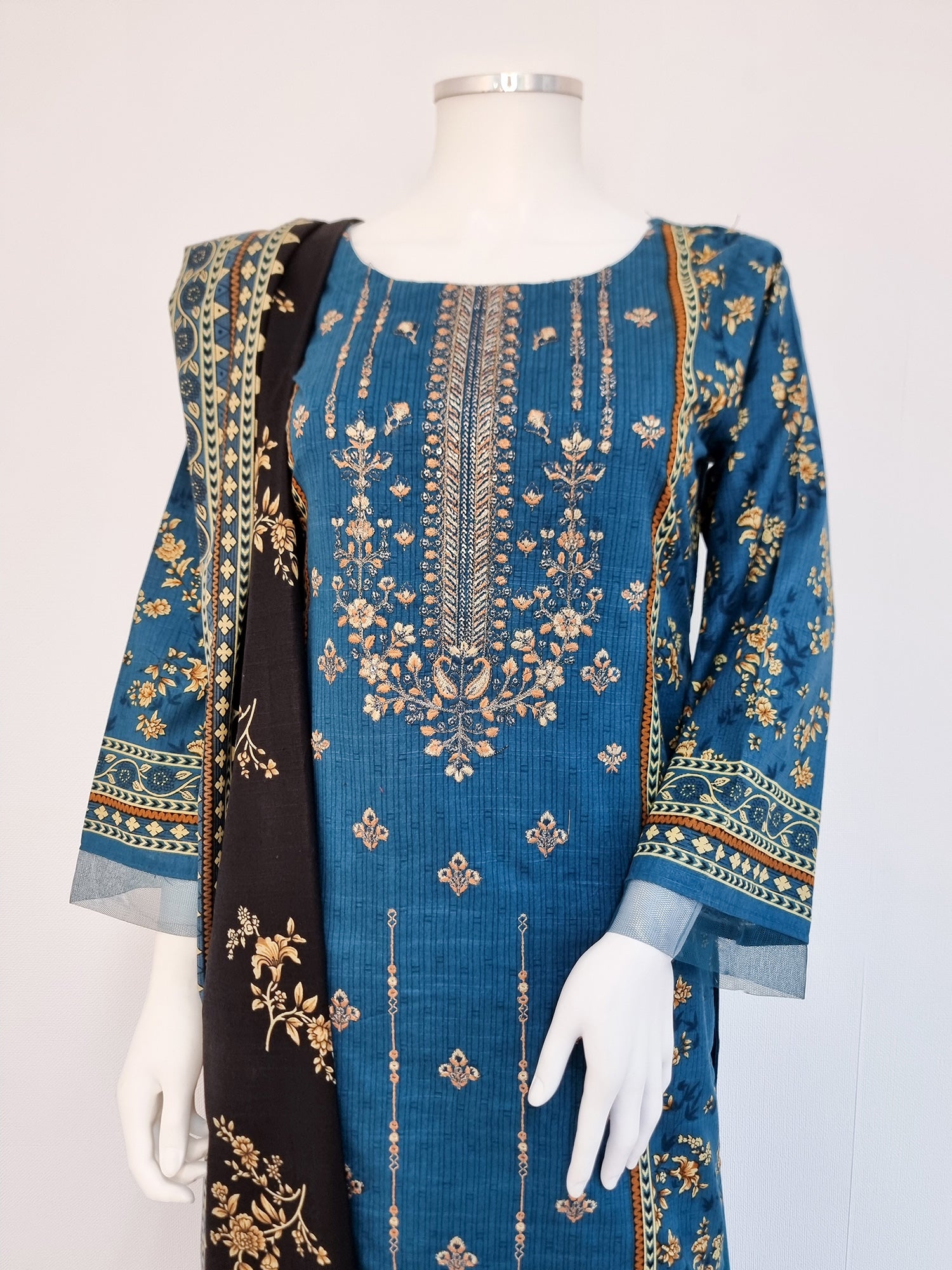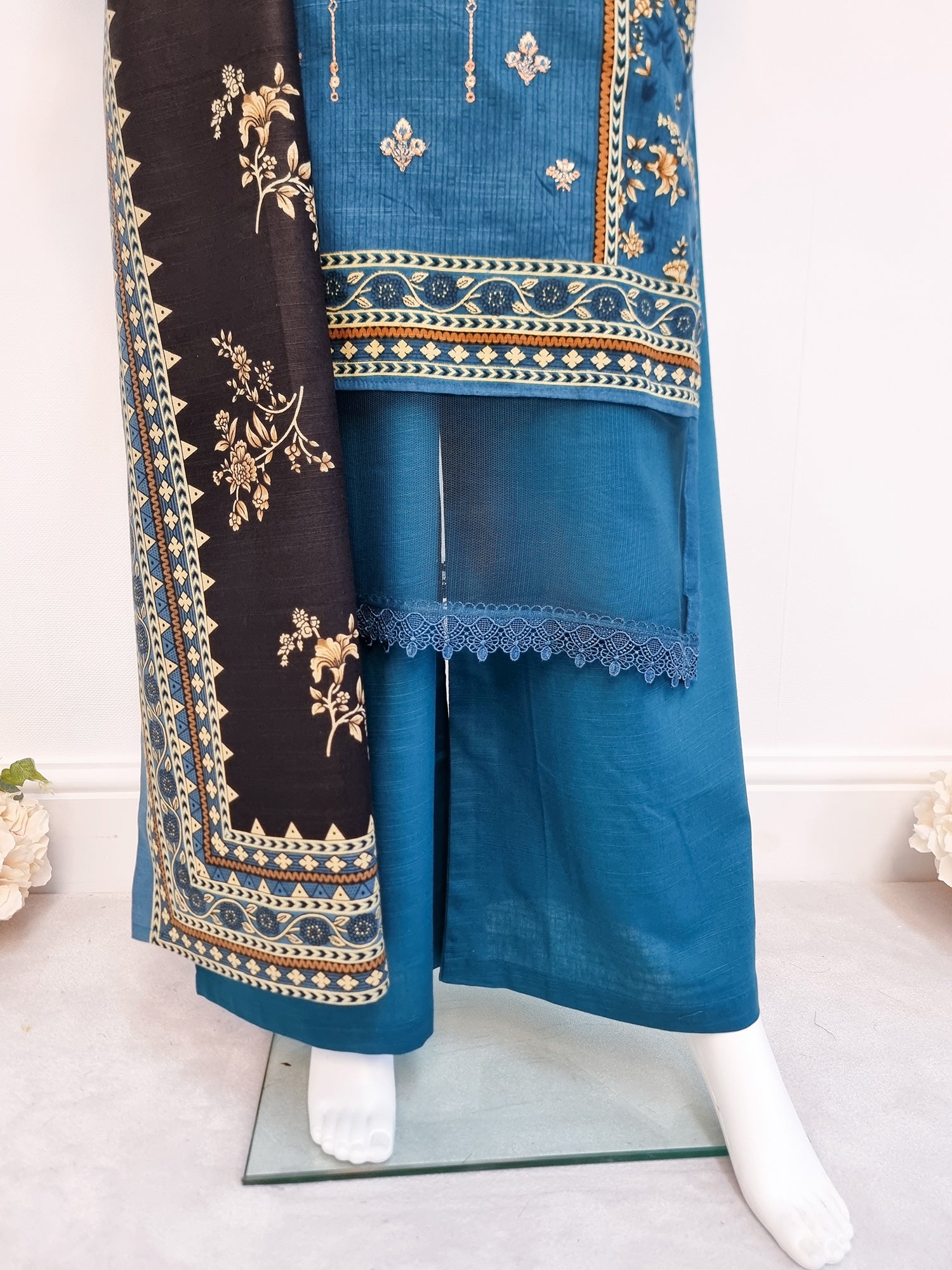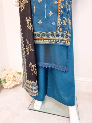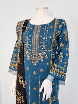 Embroidered Khaddar 3-Piece Suit with Shawl