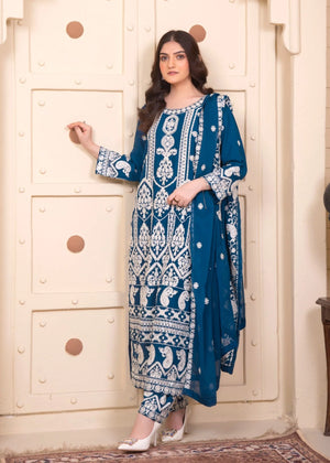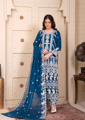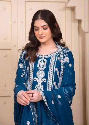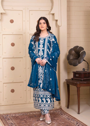 Zinc Luxury Embroidered Chiffon 3-Piece Suit