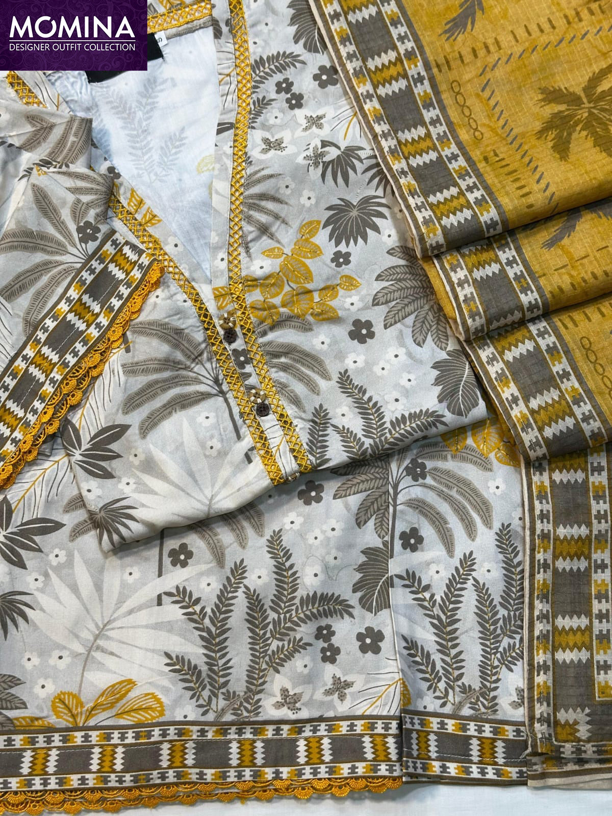 Mustard & Light Grey Winter Slub Linen Casual 3-Piece Suit