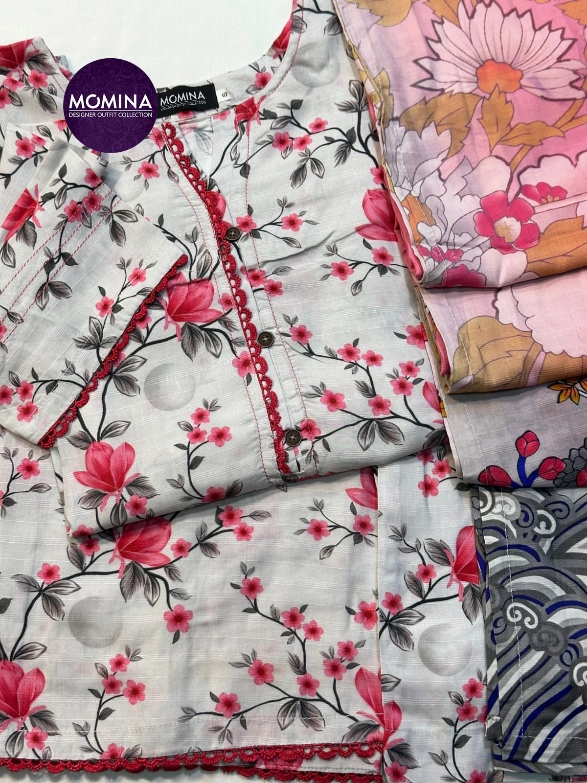 Off-White & Pink Casual Winter Linen 3-Piece Suit