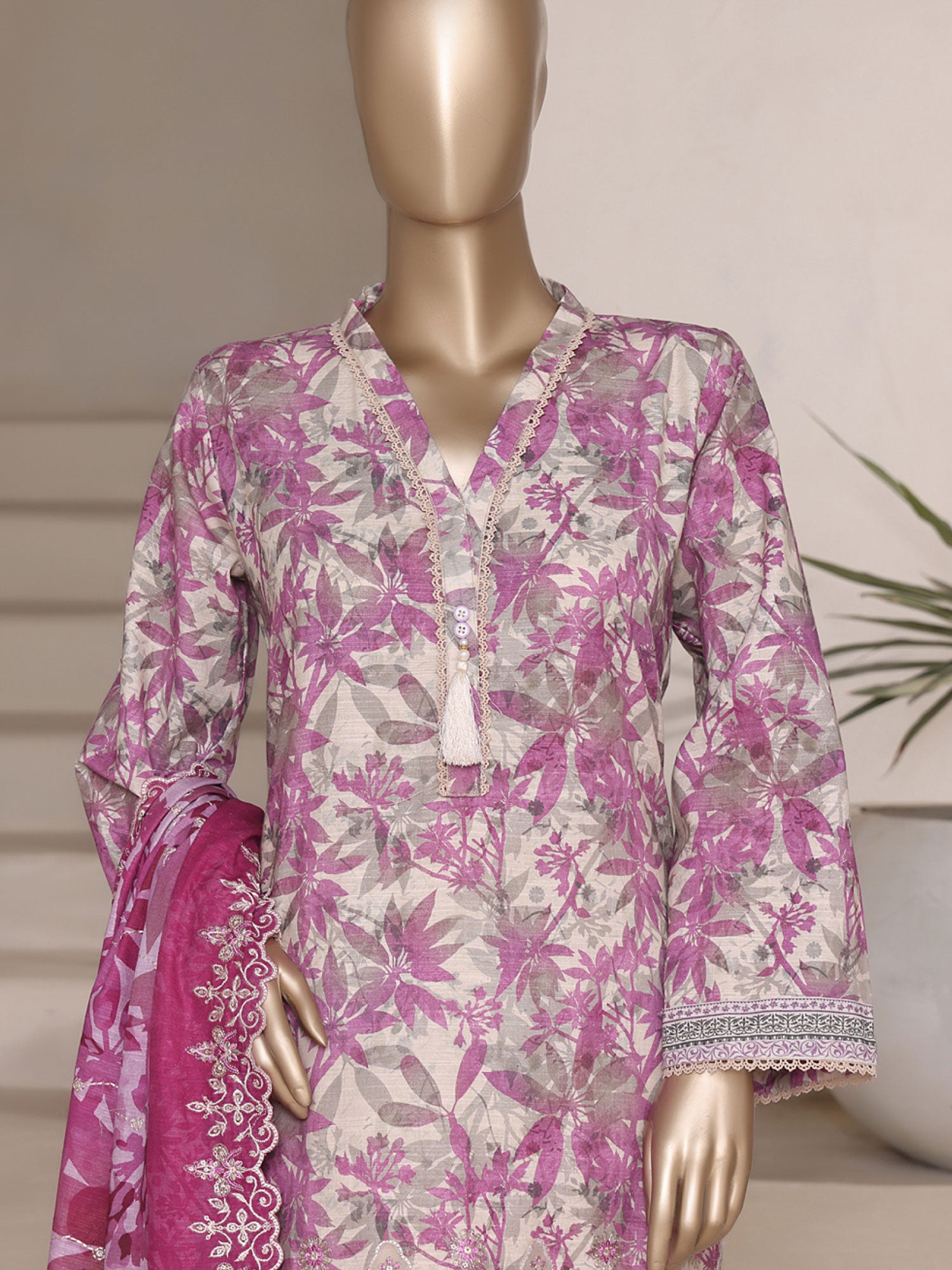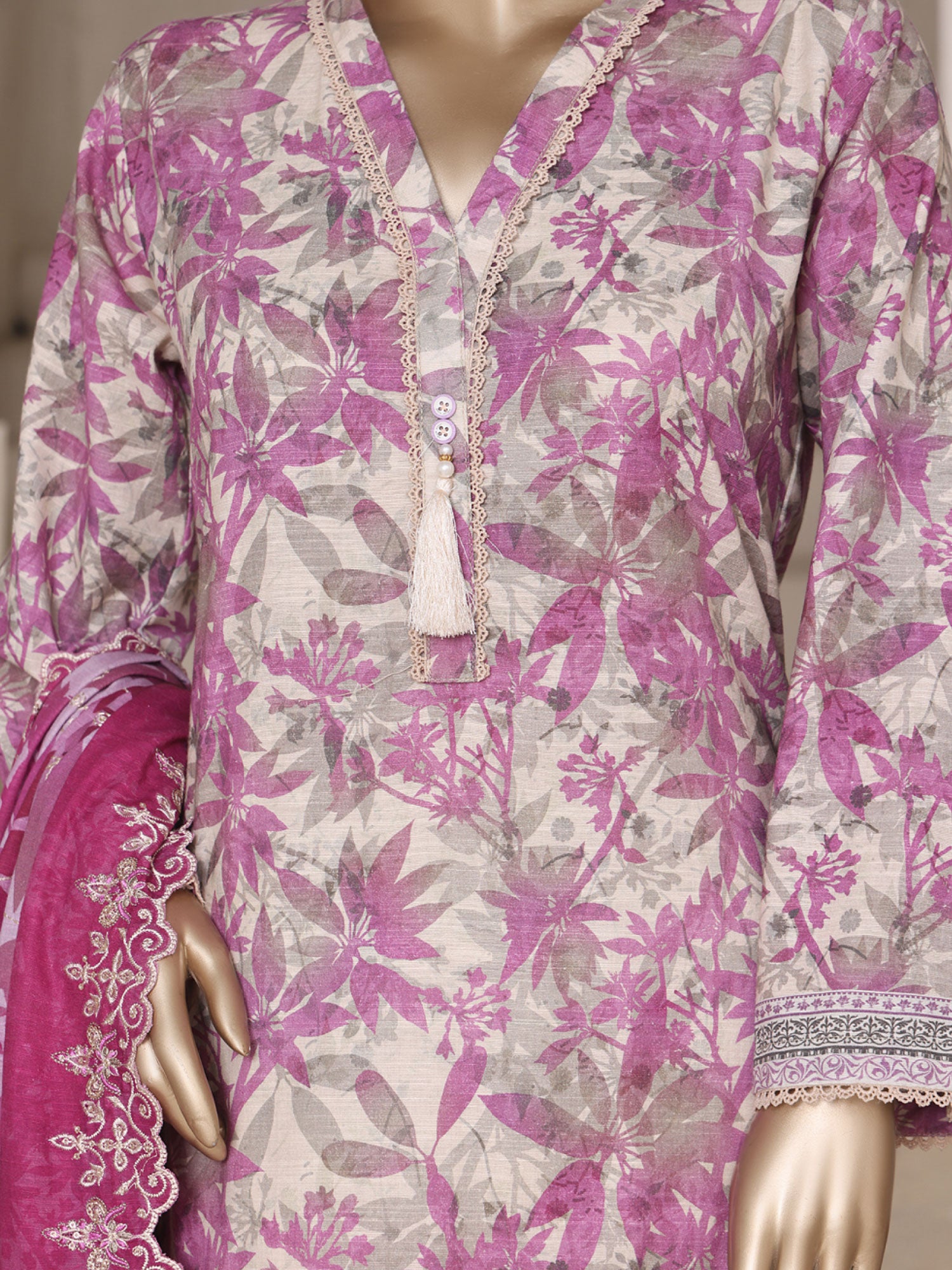 • Printed embroidered khaddar dupatta