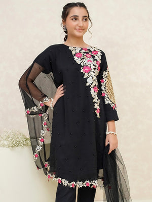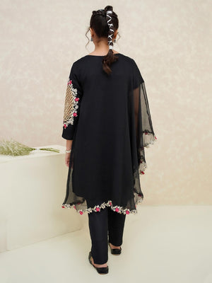 Kids Black Poncho Style Embroidered Chiffon Suit