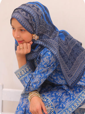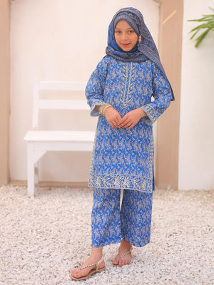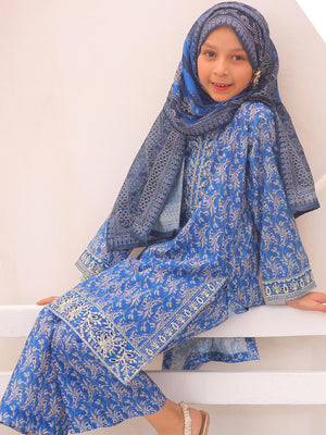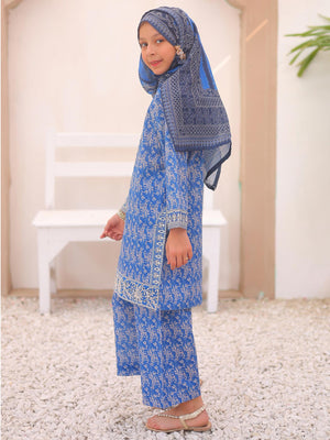 Kids Blue Casual Swiss Lawn 3-Piece Suit