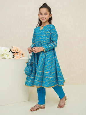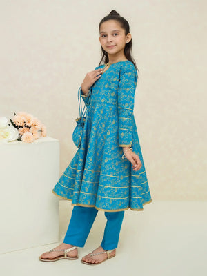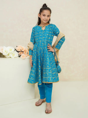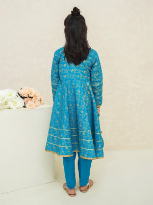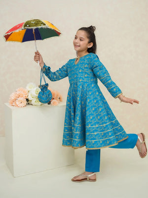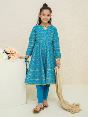 Kids Blue Rawsilk Frock Style 3-Piece Suit