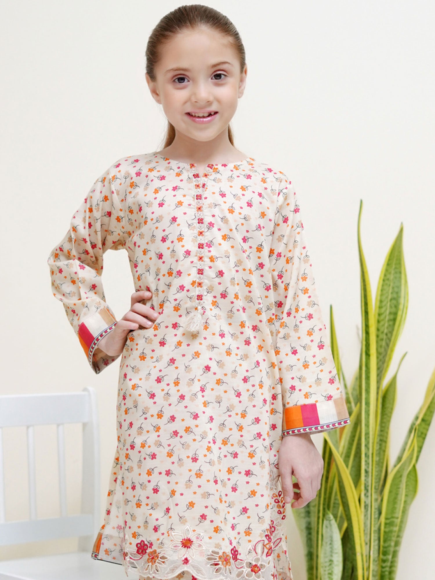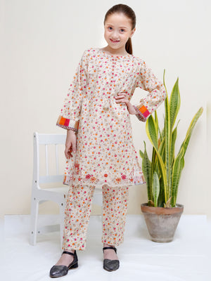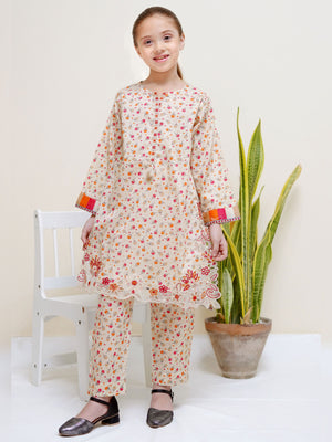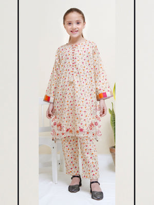 Kids Cream Coords Embroidered Lawn 2-Piece Suit