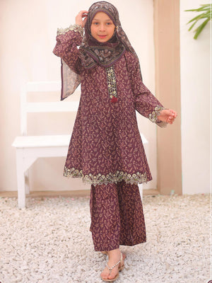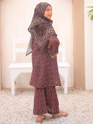 Kids Deep Purple Casual Swiss Lawn 3-Piece Suit