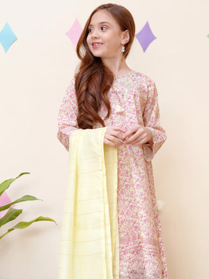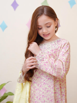 Kids Embroidered Cotton 3-Piece Co-Ords Suit - Lemon