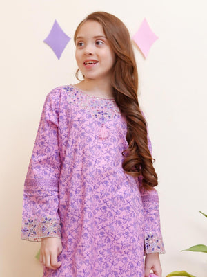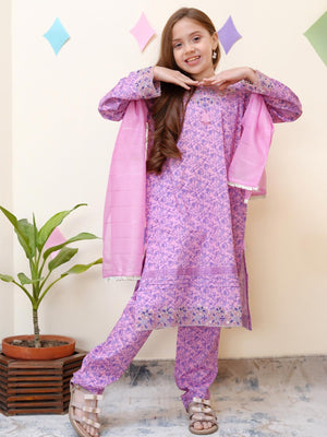 Kids Embroidered Cotton 3-Piece Co-Ords Suit - Light Purple