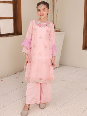 Kids Embroidered Lux Organza Suit - Pink