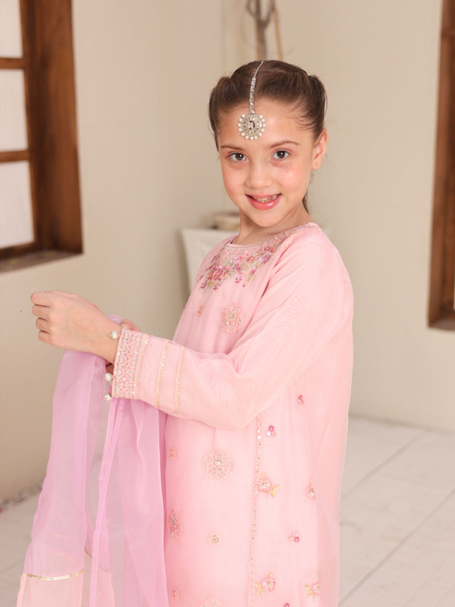 Kids Embroidered Organza 3-Piece Suit