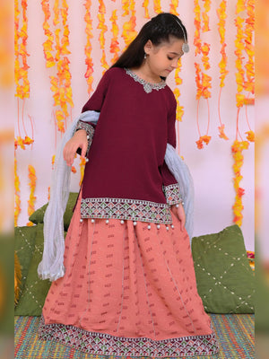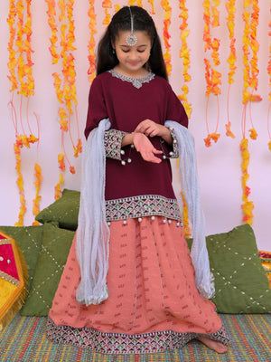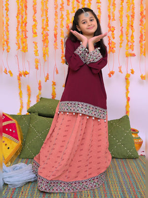 Kids Festive 3-Piece Lehnga Suit - Rose & Coral Pink