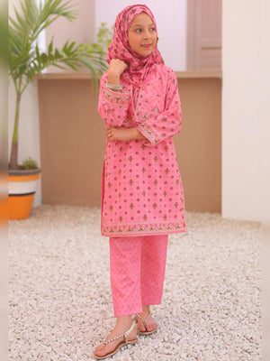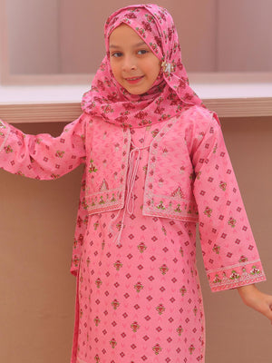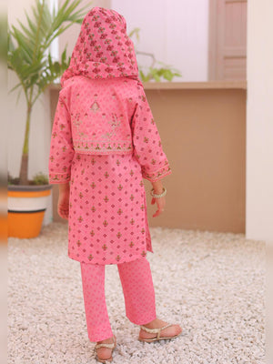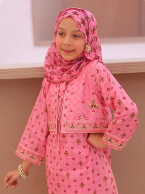 Kids Pink Casual Swiss Lawn 4-Piece Suit