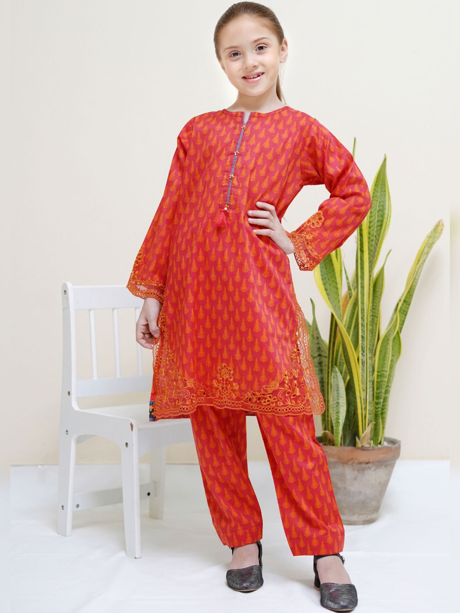 Kids Red Coords Embroidered Lawn 2-Piece Suit