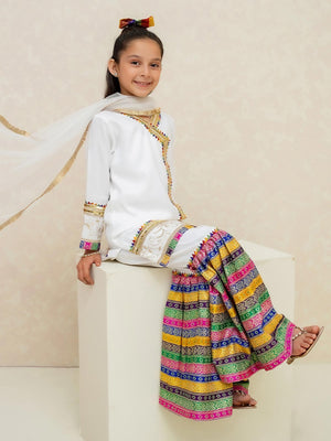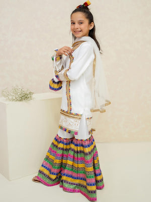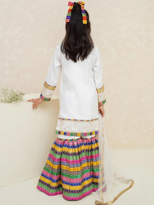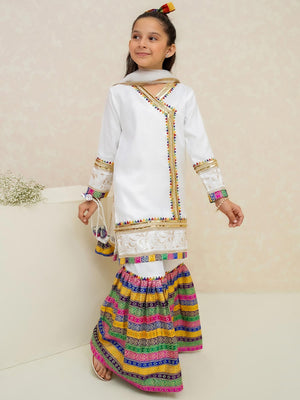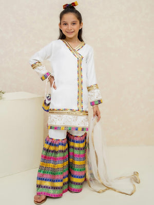 Kids White Rawsilk Angrakha Suit with Jamawar Gharara
