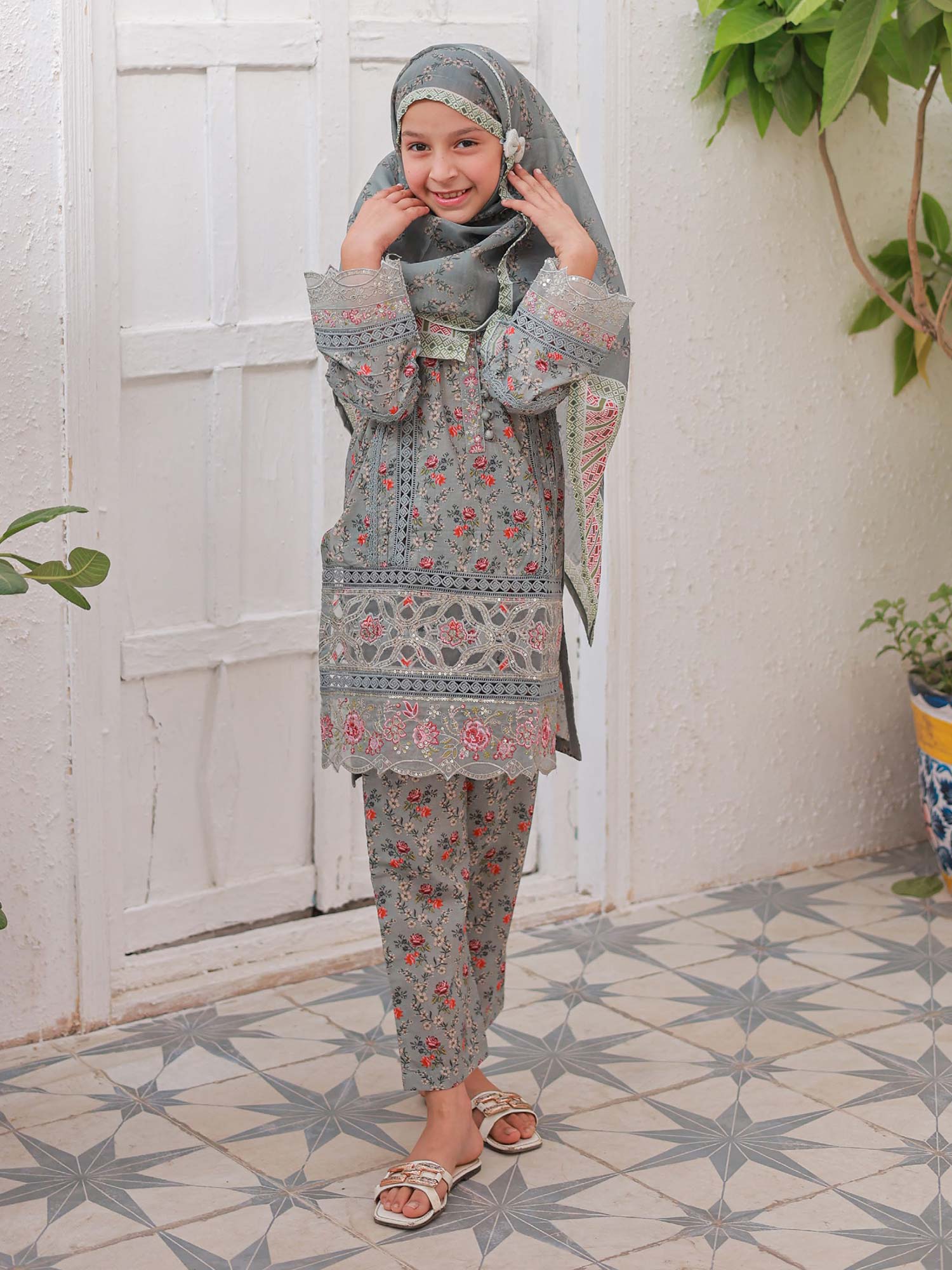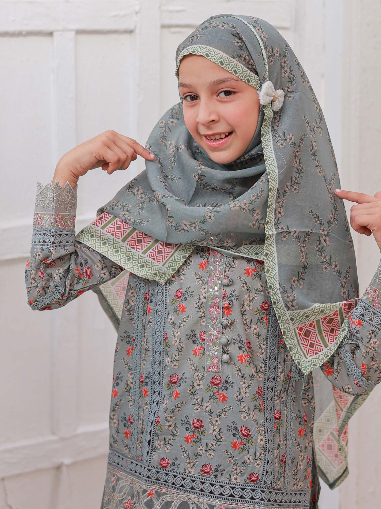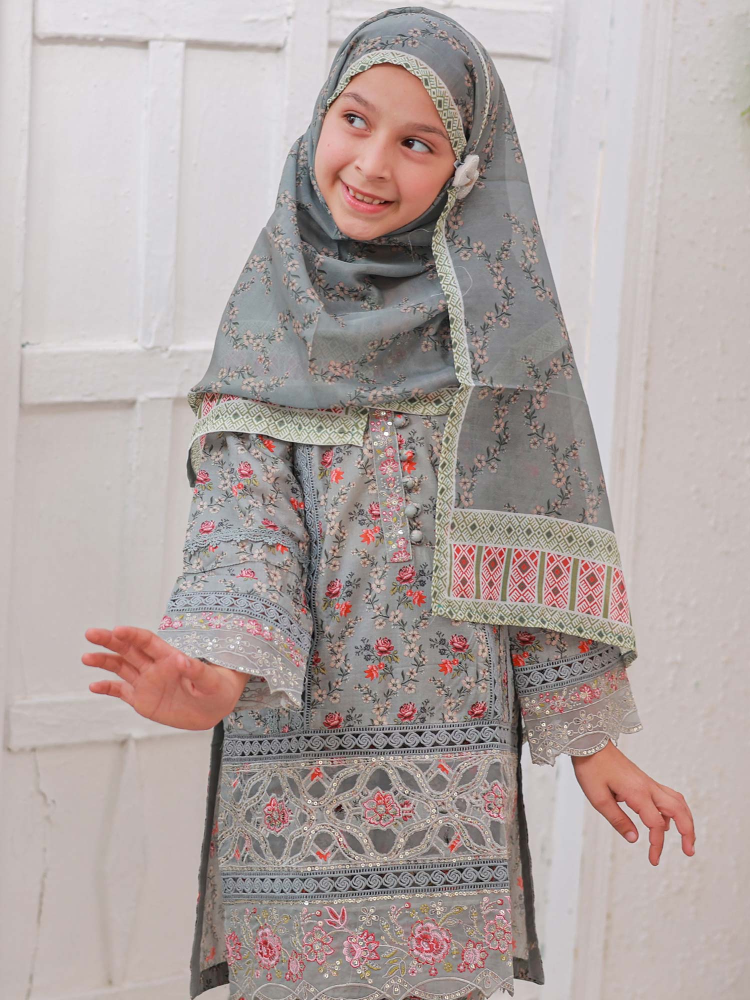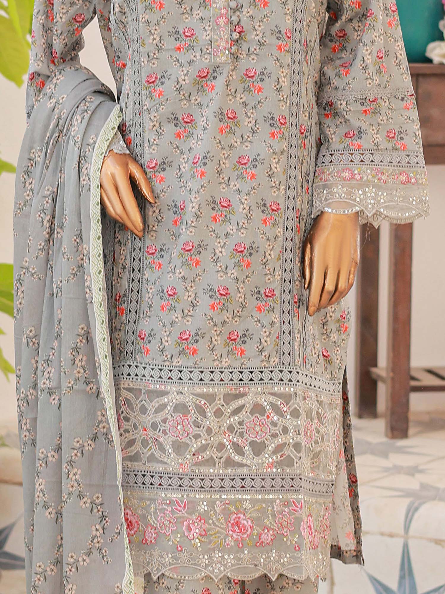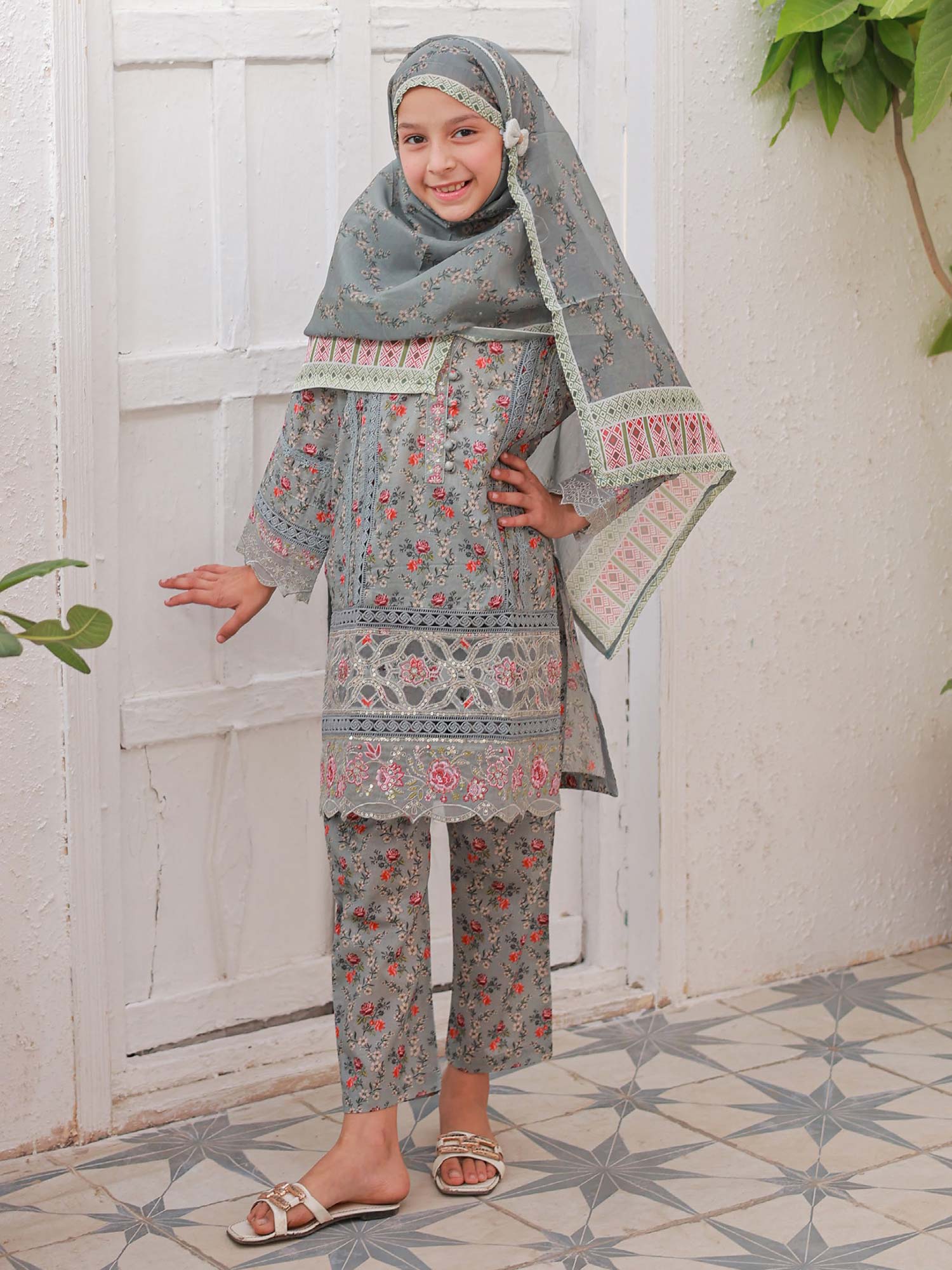 Mother-Daughter Lawn Casual 3-Piece Suit - Grey