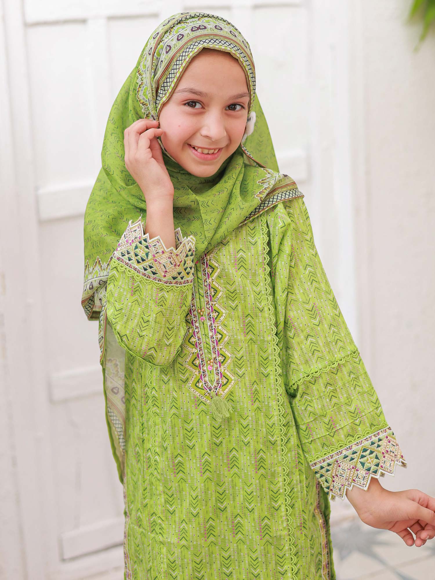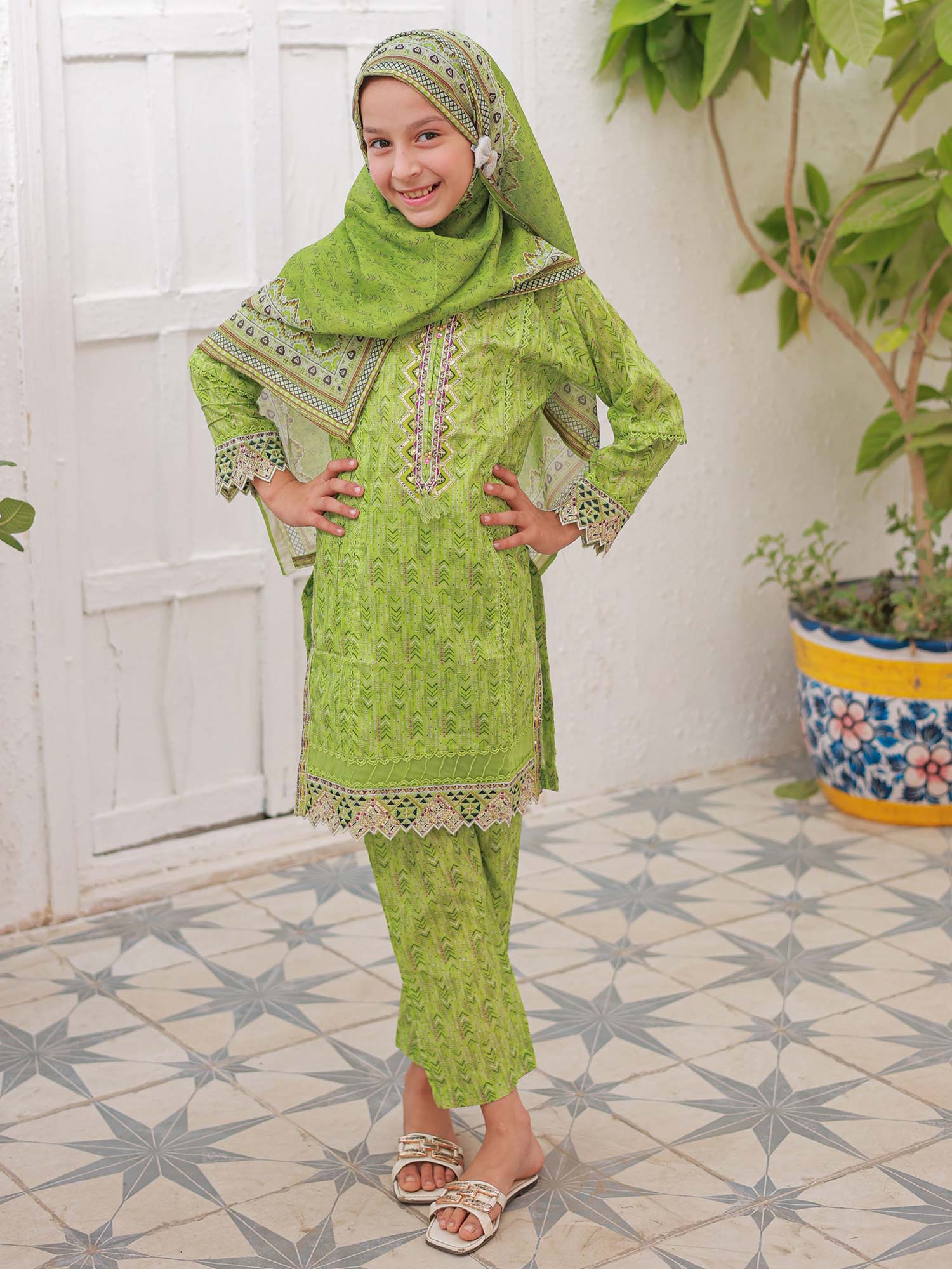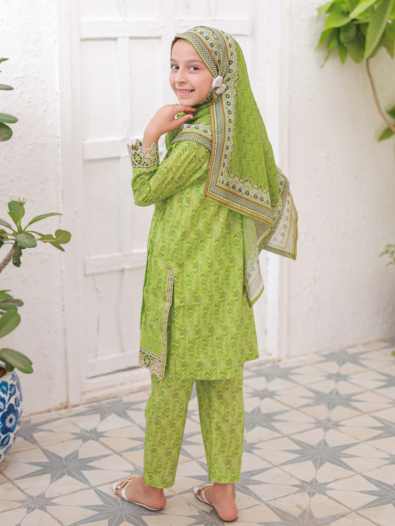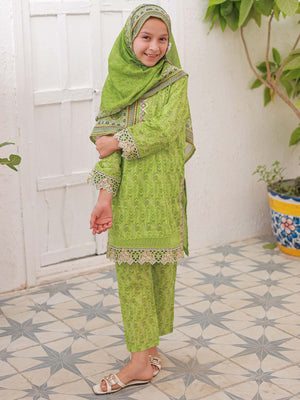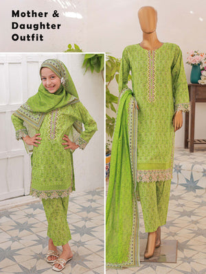Mother-Daughter Lawn Casual 3-Piece Suit - Lime Green