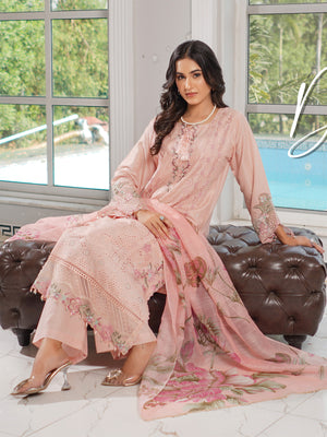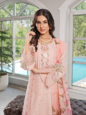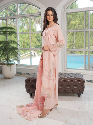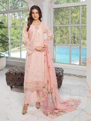 Munira Embroidered Lawn Suit (MSL-01) - Peach